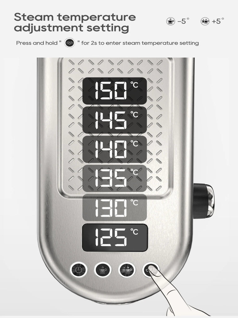 - POWERFUL AND ARTICULATING STEAM WAND: Create silky smooth microfoam for latte art with the 270° swivel steam wand. The high-pressure steam system (125-150°C) makes achieving café-quality milk texture a breeze.