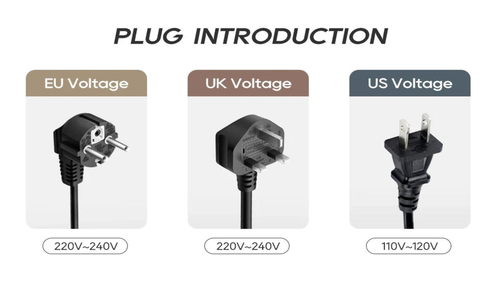 Plug type: FREE US/EU/UK/AU plug adapter included