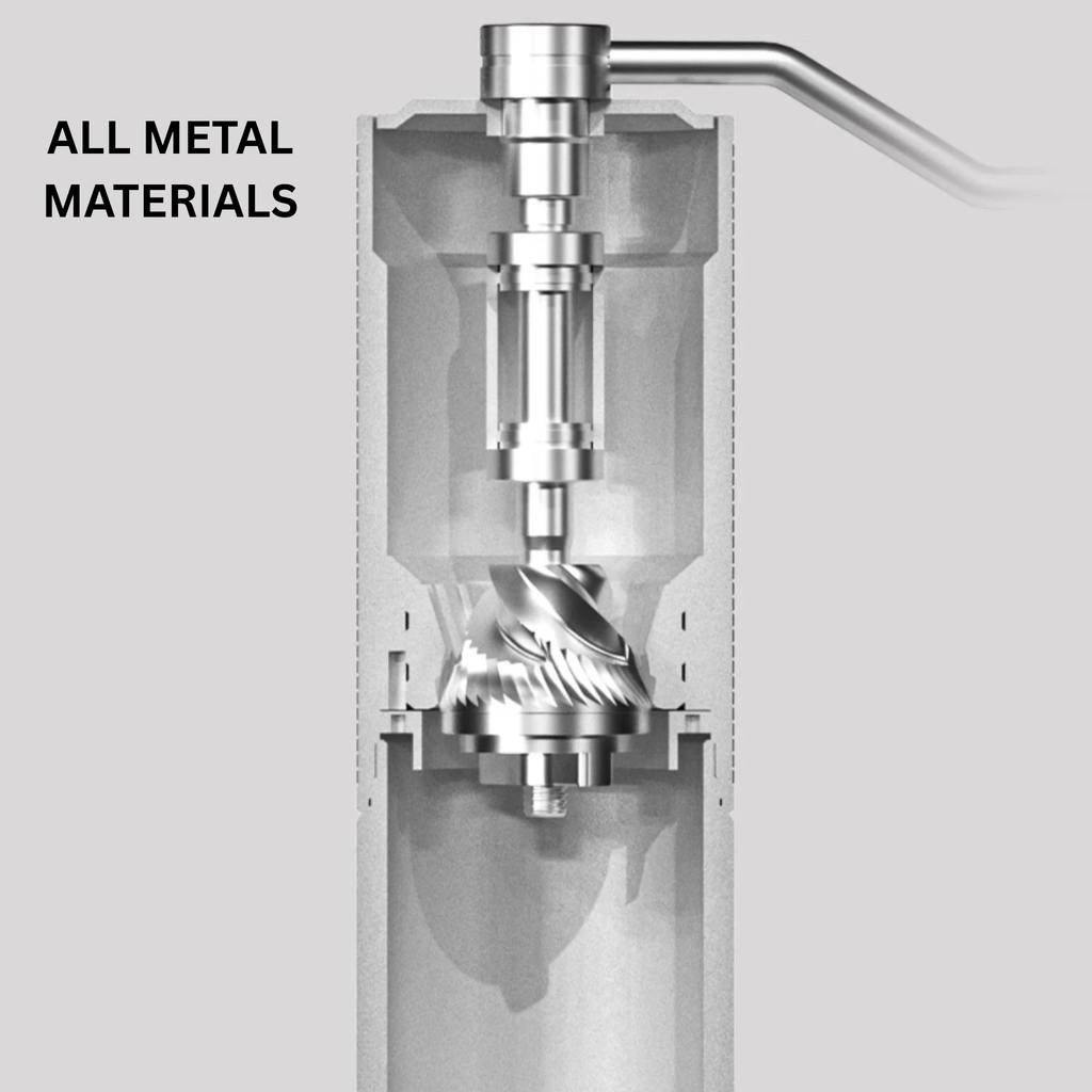 - DUAL-BEARING SYSTEM: The central shaft is held by two precision ball bearings, providing a smooth, effortless rotation and highly uniform grind size.