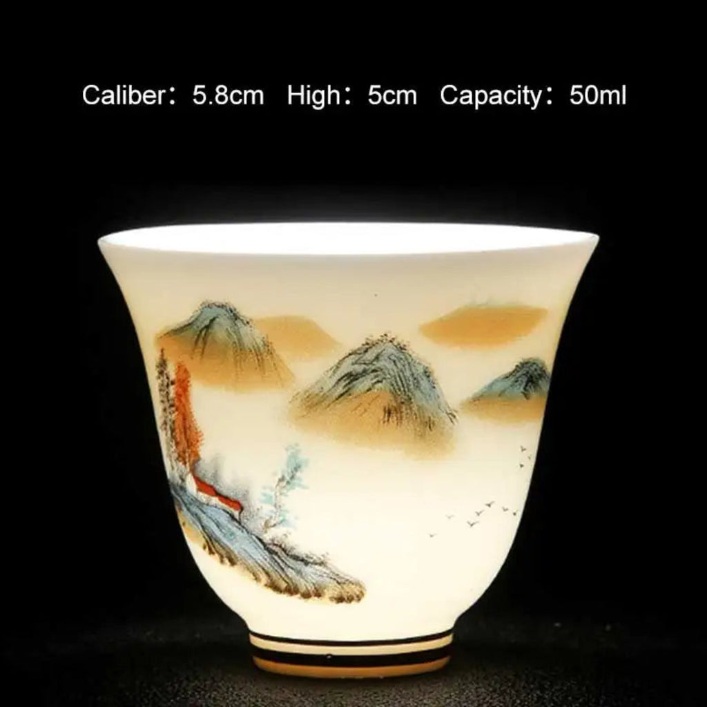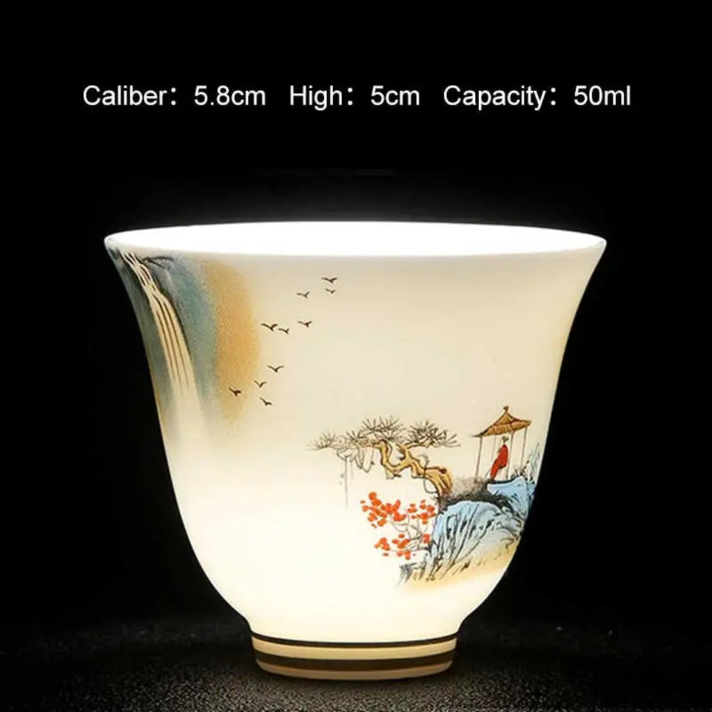 This exquisite teacup is more than just a vessel for tea; it's a portable work of art". The serene landscape and delicate flora reflects traditional Chinese culture and philosophy, offering a moment of tranquility with every sip.