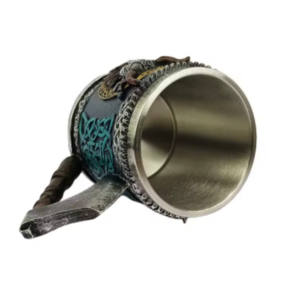 - PREMIUM CRAFT UPGRADE: Built to last with a durable resin exterior and a sturdy stainless steel interior, this mug is as tough as the warriors it represents. The mouth of the cup is thick and smooth, with an increased height of 0.6 inches. When drinking, your lips will not touch the cup body, making it more comfortable. It works well for coffee, tea and even drinking beer and wine. The comfortable grip and large capacity make it perfect for your favorite beverages, whether it's a hearty ale or a potent brew. Join the camaraderie of the Norsemen. Give a mighty 'Skål!' (Cheers) as you toast to your conquests.